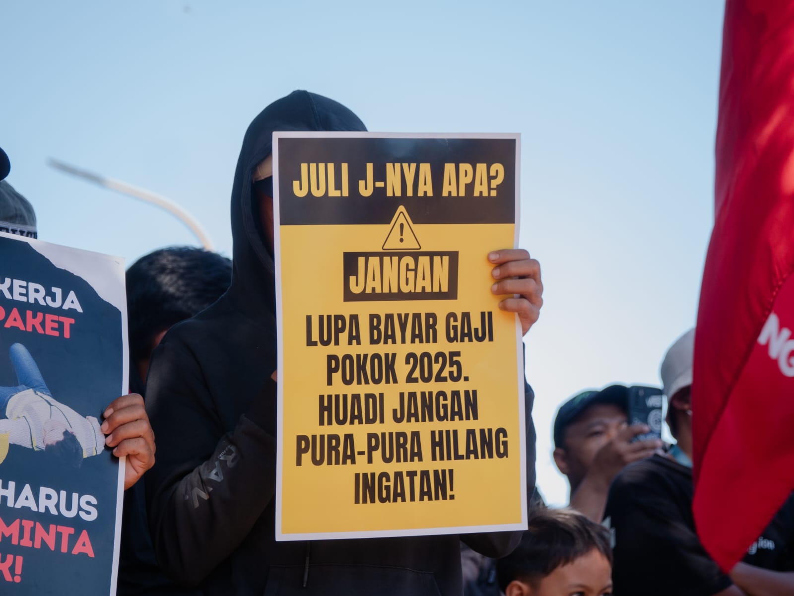 Pemerintah, wajib turun tangan secara tegas dan aktif. Segera lakukan pemeriksaan menyeluruh terhadap aktivitas dan keuangan PT Huadi. Bekukan izin operasional sementara hingga hak-hak buruh dipenuhi. Gunakan kekuasaan negara untuk mengamankan aset perusahaan sebagai jaminan pembayaran upah, pesangon, dan kewajiban lainnya.