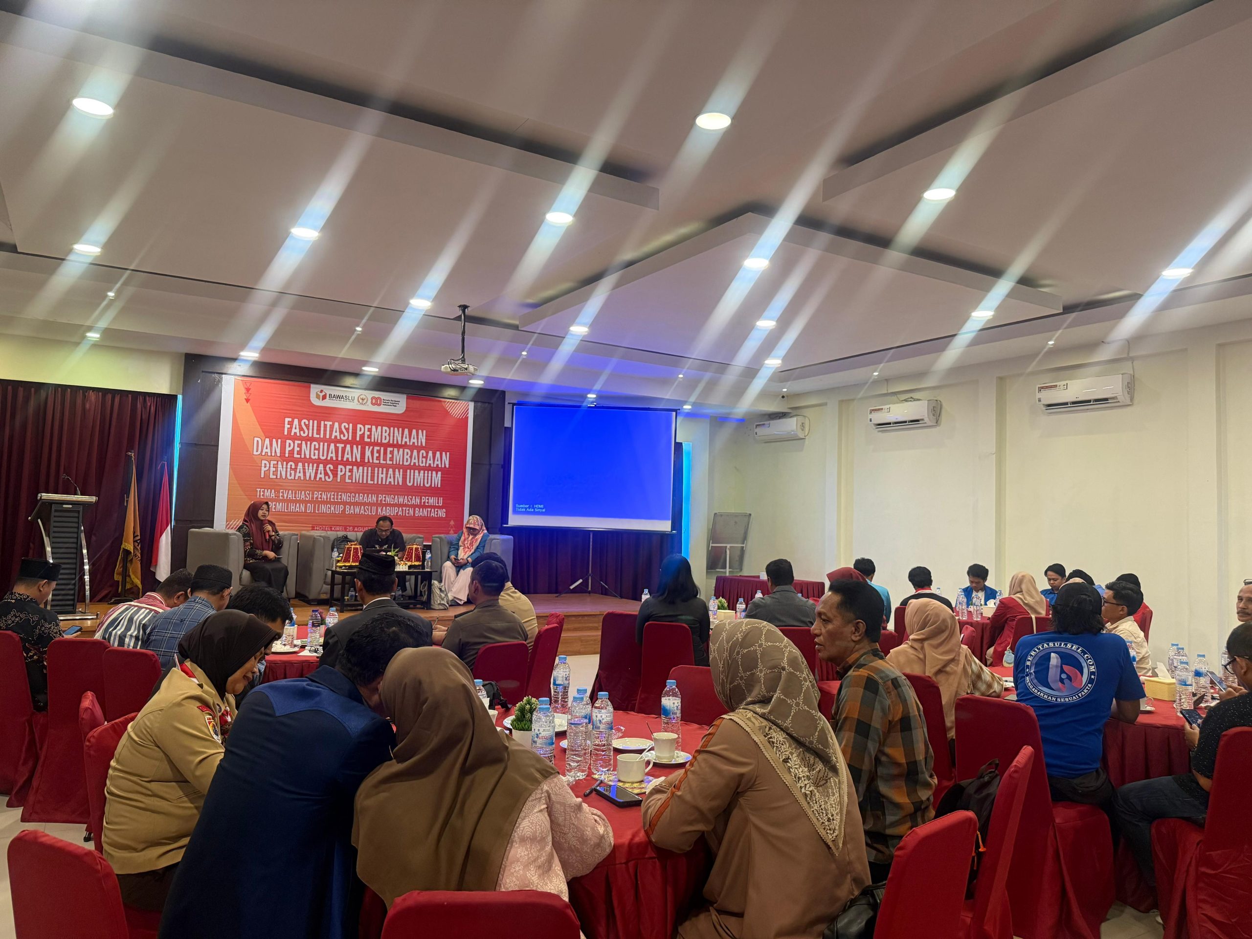 Tiba di Hotel Kirei sekitar pukul 09.15, saya disambut meja registrasi. Daftar hadir ternyata sudah dipenuhi nama-nama lembaga. Tanpa berpikir panjang, saya menuliskan nama saya atas nama Ketua JOIN Bantaeng. Usai itu, saya melangkah masuk ke aula. Beberapa panitia yang juga staf Bawaslu Bantaeng menyapa ramah. Bahkan, Ketua Bawaslu Bantaeng, Ibu Ningsih Purwanti, yang saya kenal sebagai sosok murah senyum, juga menyapa saya langsung. Itu memberikan rasa hangat tersendiri di awal acara.