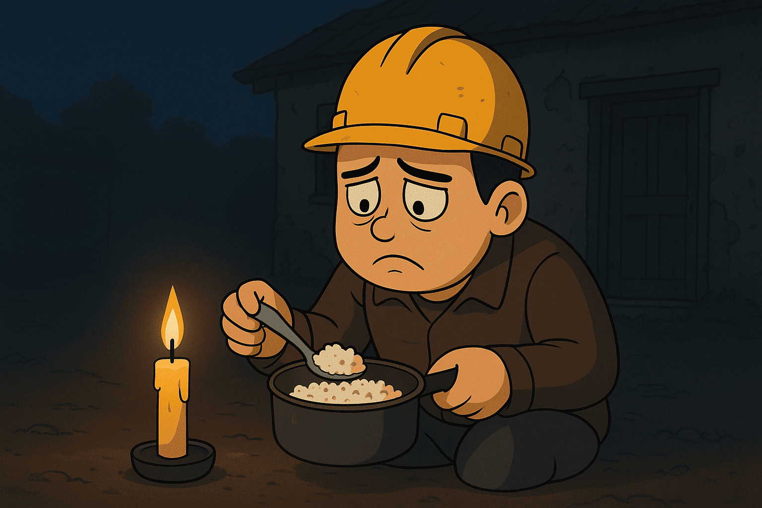 Di dalam jiwanya, hendak berontak menagih dalam lirih, sebab kebutuhan hidup telah tertagih. Sementara di antara mereka ada keluarga: istri dan seorang ibu, hanya mampu menanak nasi di atas lilin yang putih.