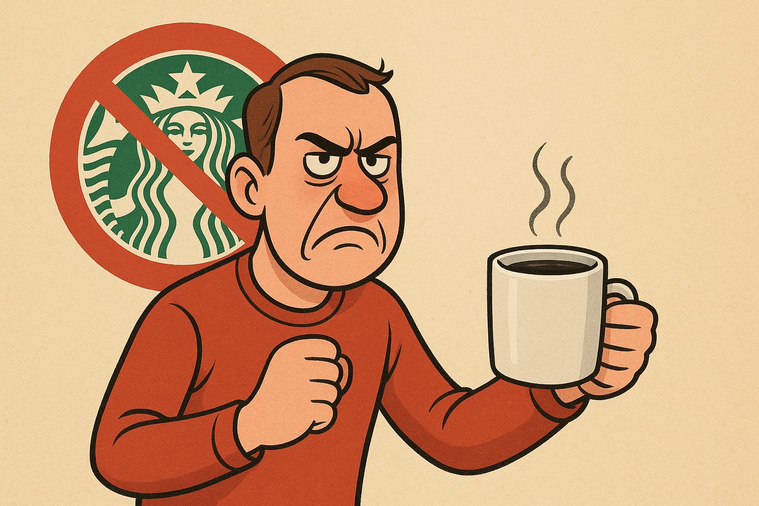 Di bawah lampu neon — Starbucks menulis nama di gelas tanpa makna