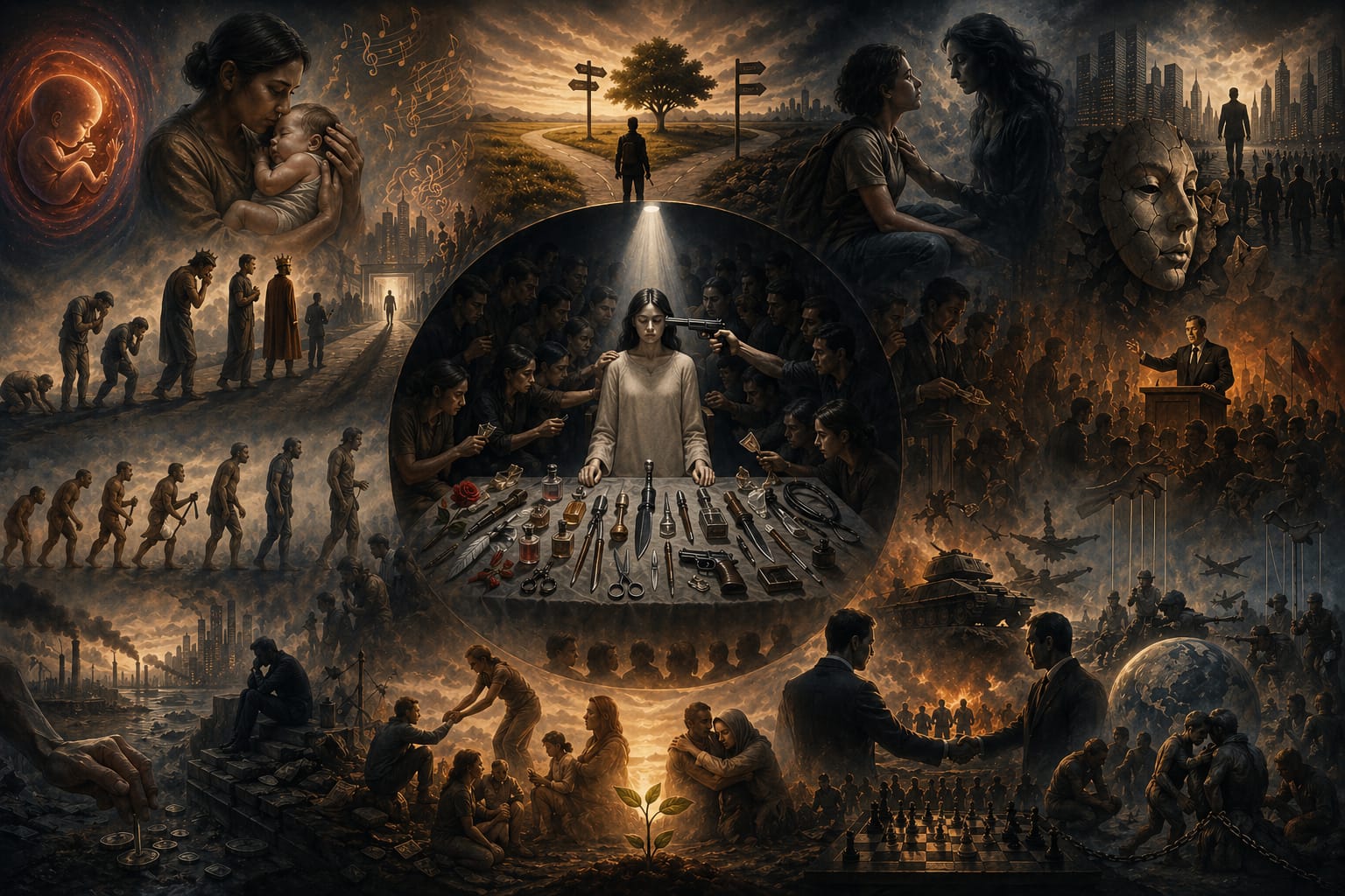 Mereka (manusia) adalah satu-satunya makhluk di bumi yang mampu menciptakan sebuah alat pemusnah pada nuansa kompetisi mengumpulkan amunisi untuk membinasakan sesamanya, ada dengan menyakiti perlahan penuh kelembutan, ada menciptakan derita, dan memusnahkan harapan, mimpi kehidupan aman, nyaman harmoni.